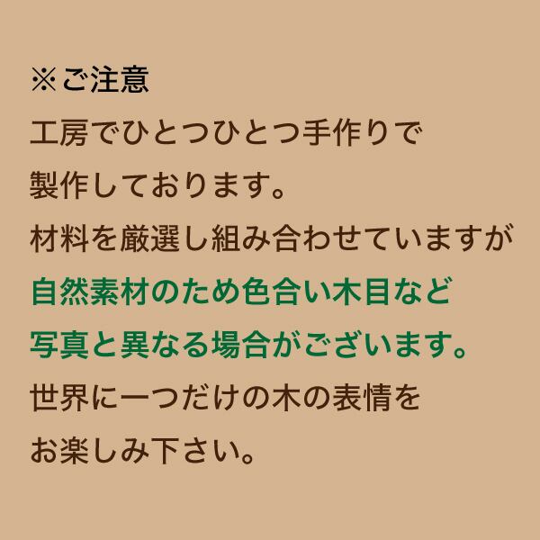 ・作品の素材に天然の木材を使用しています。天然木材は、木目や色、節など一つひとつ違いがあり、写真と異なる場合がございます。